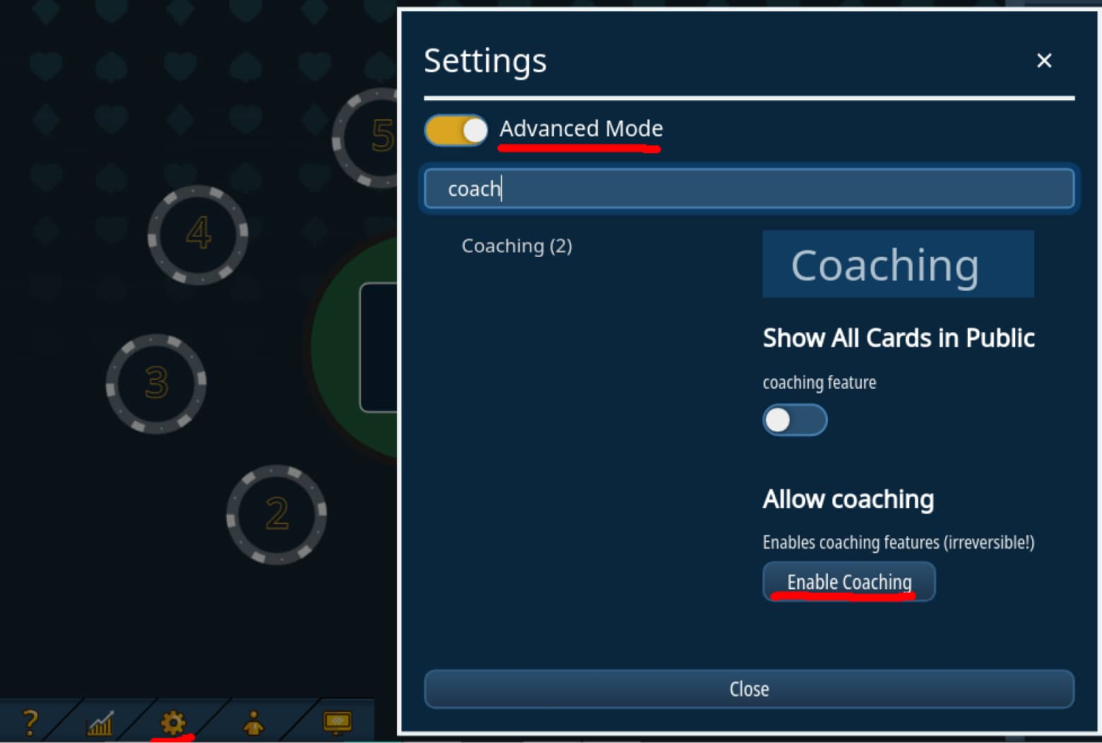 - from now on all players will be notified about the table being a coaching table and people possibly being able to see their cards